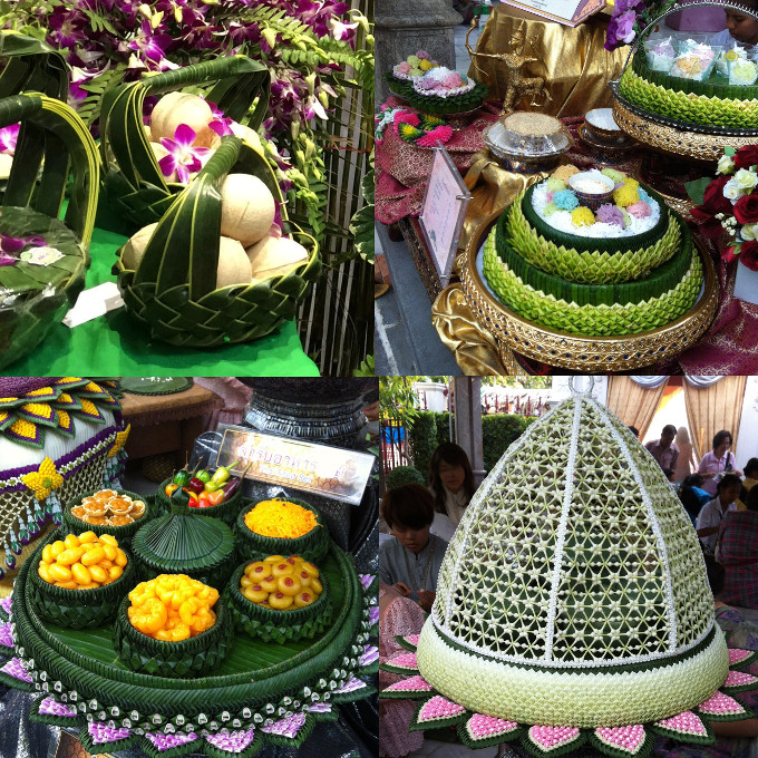 タイには「植物を編む」という技術がある。タイの伝統工芸で、庶民的なバスケットは序の口、仏教行事に使うもの、王族の暮らしに使うものと、ここまでやるかというほど繊細に編み込んで、おおきな立体を作り出す。