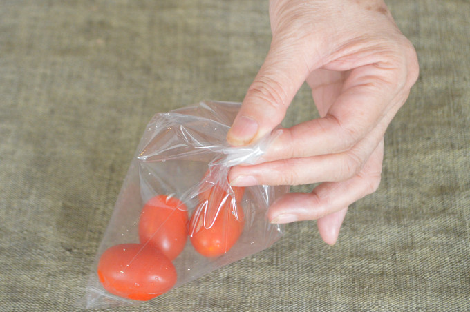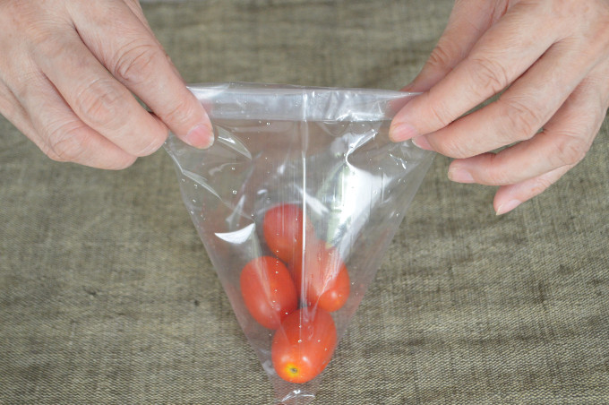 1.まず袋の両端をつまんで袋の真ん中で合わせる。