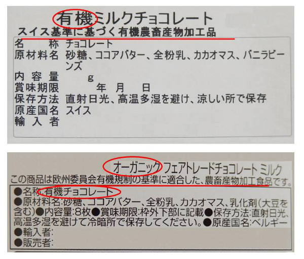 多くのチョコレートのように、有機農産物と有機畜産物の両方を使った加工食品は、有機JASマークの義務付けはなく、マークを付けずに「有機」と表示しても今のところ違反とはならないのですが、原料や作り方が有機の基準であることが前提となります。ただし、原材料が全く有機でもないのに表示すれば、景品表示法の優良誤認などに抵触する可能性があります。