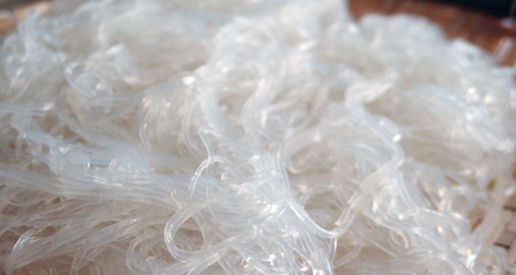 スーパーの売り場でよく見てみると、中国から輸入された春雨には「緑豆春雨」と書かれているものが多いですね。(中国産でも緑豆以外の澱粉で作られているものもあります。)