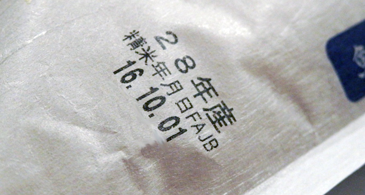 一般の加工食品には賞味期限、消費期限が記載されているが、お米には産地や品種とともに、「産年」および「精米年月日」が記載されます。ここでいう「産年」の年度とは、一般的な暦とは少し異なる“米穀年度(べいこくねんど)”によるもので、11月1日から10月31日までの1年間を区切りとしています。年度末、つまり10月31日属する月の暦年が「年度」とされるので、昨年、2015年(平成27年)11月1日から今年の2016年(平成28年)10月31日までの米穀年度は、年度末である10月31日「平成28年産」と、今年の表示がされることになります。